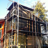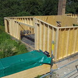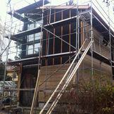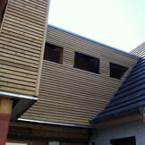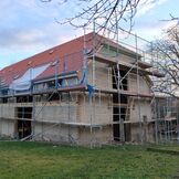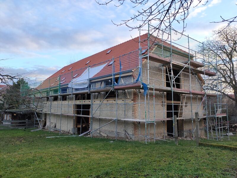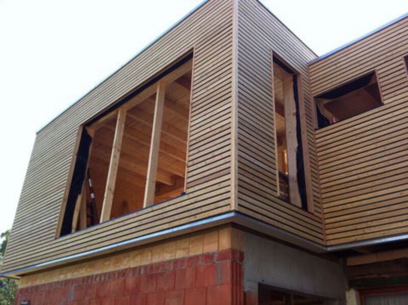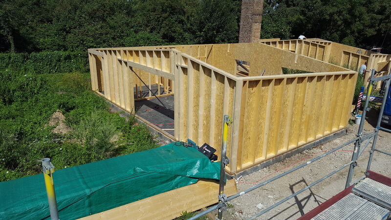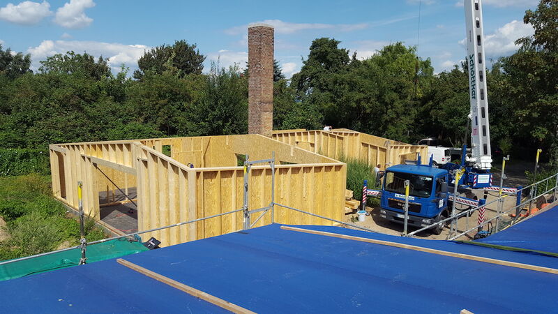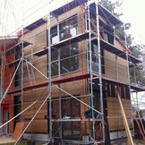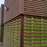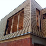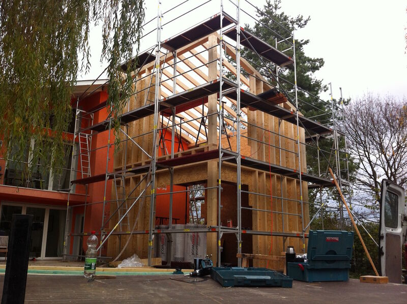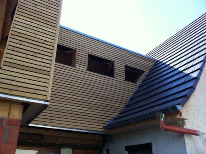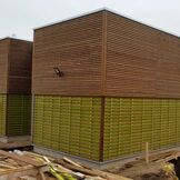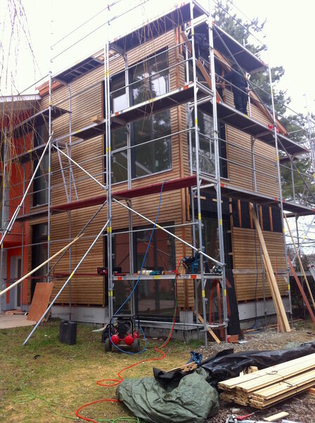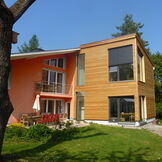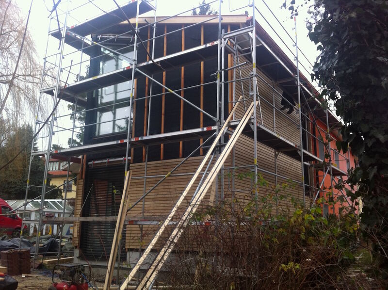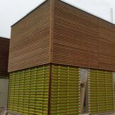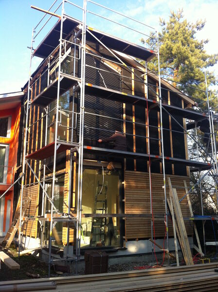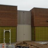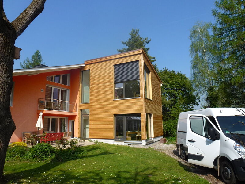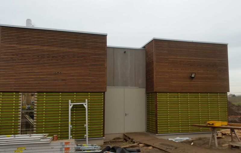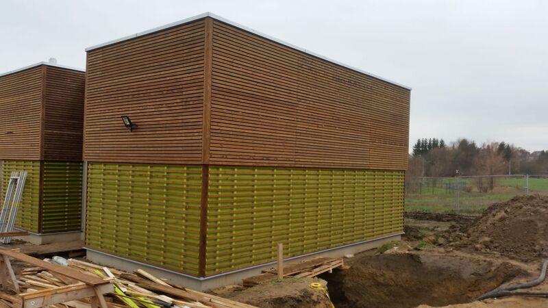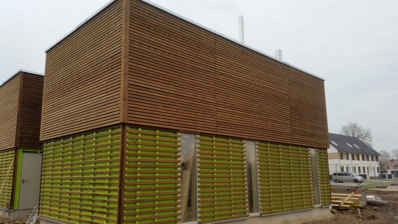 Prototyp eines Gewerbebau für ein Blockheizkraftwerk mit Kebonyfassade und Stamisol extreme color Farbe “Geissblatt“